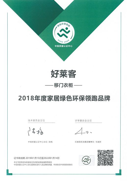 在紅星美凱龍集團推出的“綠色領跑品牌項目”中,好萊客從數(shù)千家居集團中突圍,榮獲了中國質量認證中心頒發(fā)的“2018年度家居綠色環(huán)保領跑品牌”認證,這也是對好萊客踐行環(huán)保健康生活做出巨大努力的認可。