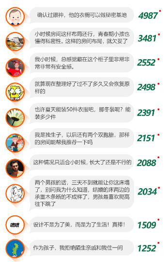 盤點(diǎn)熱門評論TOP10,無論是家長還是孩子,都格外關(guān)注兒童房的收納功能,培養(yǎng)孩子收納整理的好習(xí)慣都需要從小做起。隨著自主意識的日益成熟,尤其是步入青少年時(shí)期后,隱私保護(hù)越來越成為孩子的強(qiáng)烈訴求,對兒童房的設(shè)計(jì)也更加注重私密空間和個(gè)性展示。