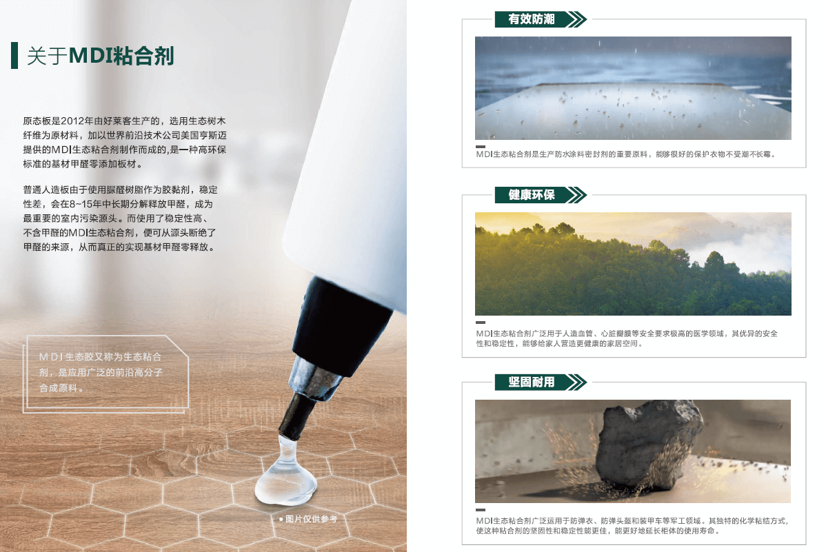 好萊客痛心于社會(huì)談“醛”色變的現(xiàn)實(shí),積極承擔(dān)發(fā)展綠色健康家居的行業(yè)使命,率先探索、引進(jìn)“MDI生態(tài)粘合技術(shù)”,于2012年和2019年分別推出原態(tài)板、原態(tài)K板,提交了一份健康家居的高分答卷。