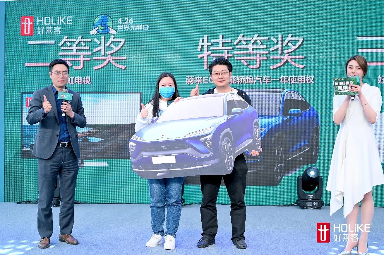 活動(dòng)當(dāng)天包貝爾還化身福利官,與好萊客合力寵粉,明星福利瘋狂派送,現(xiàn)場抽取了一位好萊客幸運(yùn)客戶,送出蔚來EC6汽車一年使用權(quán)的重磅大獎(jiǎng)。蔚來汽車成都區(qū)域副總經(jīng)理?xiàng)罘怯H自將全新蔚來EC6交付到好萊客代表、副總裁沈竣宇的手上,傳遞的不止是汽車,還有好萊客和蔚來共同為空間環(huán)保努力的決心。