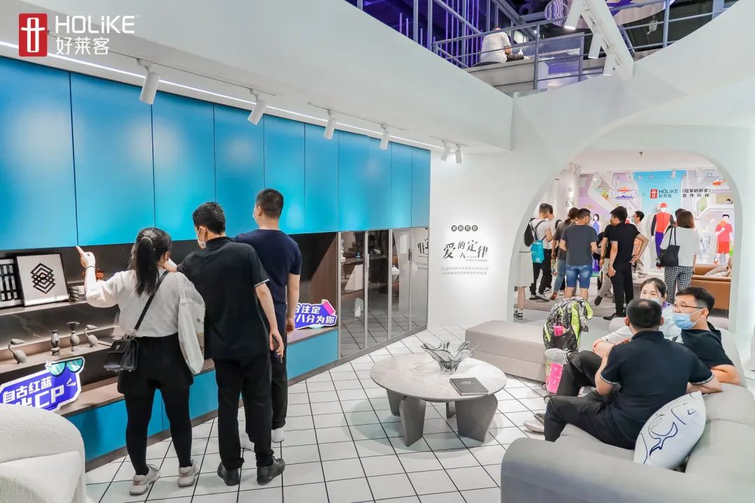 2022年7月8日,好萊客#先鋒探索號#在2022中國建博會(廣州)官方首發(fā),“潮劇同款、冠軍潮家、原態(tài)G6、Mini星球、潮家門墻、潮玩SHOW場”6大主題空間閃耀亮相,為新時代“潮咖”帶來一場未來的“潮PARTY”。大“H”為潮頭,向著未來航行,20組藍(lán)色燈光矩陣是激起的浪潮,未來的方向是基于20年的沉淀。