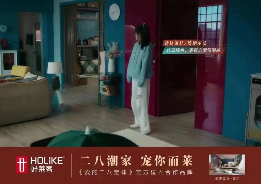 定制家居大師好萊客作為《愛的二八定律》官方植入合作品牌,為時尚滿分、又極具個性的秦施用都市藍(lán)調(diào)系列大膽打造了紅藍(lán)撞色輕奢復(fù)工風(fēng)的家,包含了廚房、客廳、臥室、衣帽間和整個全屋的窗簾電器等等。
