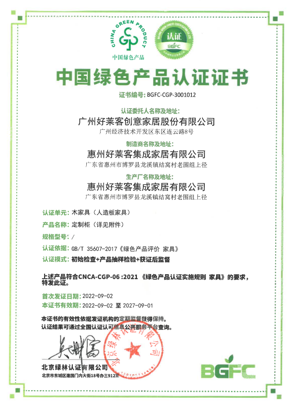 值得一提的是,好萊客在近期還獲得了《中國綠色產(chǎn)品認證證書》,代表好萊客產(chǎn)品全生命周期均符合綠色發(fā)展理念和環(huán)境保護要求。除此之外,原態(tài)系列產(chǎn)品更是獲得了國標環(huán)保標準ENF級,以及美國雙NAF無醛豁免認證、日本F4星認證、瑞士SGS認證等多項國際權(quán)威環(huán)保認證,達到國內(nèi)環(huán)保最頂端標準,以原態(tài)實力持續(xù)位列定制家居行業(yè)環(huán)保先鋒地位,強勢引領行業(yè)發(fā)展。
