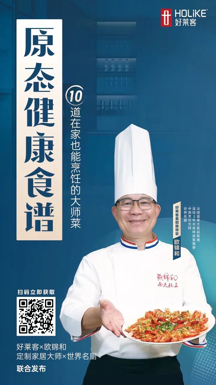 本次活動,在現(xiàn)場眾來賓的見證下,好萊客正式發(fā)布《原態(tài)健康食譜》。該食譜是好萊客攜手歐錦和大師聯(lián)合編制的健康烹飪之作,凝結(jié)歐錦和大師40多年烹飪經(jīng)驗和膳食搭配智慧,以及結(jié)合專業(yè)化、人性化、智能化的好萊客廚房產(chǎn)品,針對當(dāng)代人烹飪文化、社交方式、生活場景等需求,共有推出了10道在家也能做的大師菜,能完美滿足消費者對于理想廚房生活的不同情境:蒸煮健康的菜式,操作方式簡單且能完整保留營養(yǎng)素,特別適合當(dāng)下都市人的健康輕食需求;互動協(xié)作的菜式,與家人、朋友一起制作美食,一起在廚房這片小小天地間收獲幸福滋味;高級有面的菜式,即便是廚藝小白,也能輕松做出大師級創(chuàng)意菜,享受廚房生活的輕松與樂活……