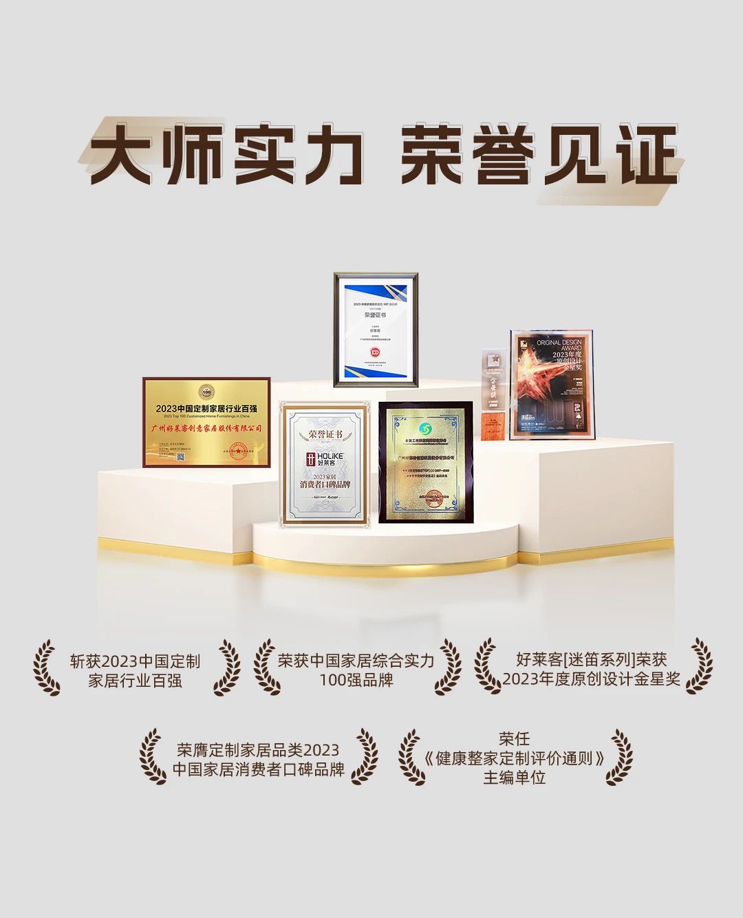 品牌實力上,好萊客一舉奪得“定制家居品類——2023中國家居消費者口碑品牌”、“2023中國定制家居行業(yè)百強”、“中國家居綜合實力100強品牌”三項大獎,并榮任《健康整家定制評價通則》主編單位;產(chǎn)品實力上,好萊客潮品【迷笛系列】也強勢斬獲“2023年度原創(chuàng)設(shè)計金星獎”。潮牌高光時刻不斷,原態(tài)潮品魅力閃耀,定制家居大師實力可鑒!