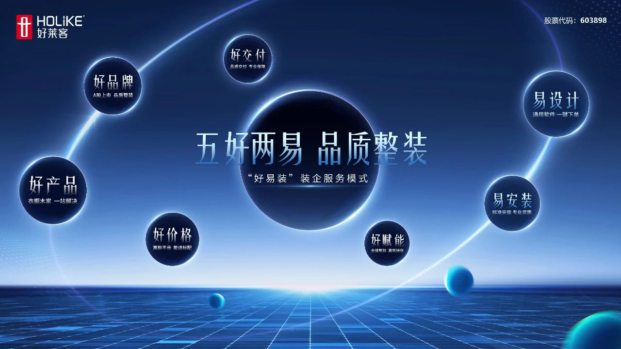 好萊客,定制家居行業(yè)滬市主板第一家上市企業(yè),專業(yè)專注于全屋定制領(lǐng)域,全面布局“全屋定制、櫥柜、木門、護(hù)墻、宅配、電器百貨”多品類齊頭并進(jìn)的全屋套系產(chǎn)品,憑借強(qiáng)大的研發(fā)能力、智能制造實(shí)力和環(huán)保品質(zhì)標(biāo)準(zhǔn),為萬千家庭提供全屋整體解決方案。自2017年至今,好萊客深耕布局整裝渠道,與全國知名裝企建立戰(zhàn)略合作關(guān)系,攜手共贏整裝產(chǎn)業(yè)生態(tài)圈。